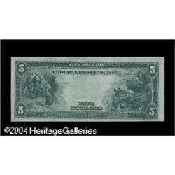 Fr. 858 $5 1914 Federal Reserve Note Choice New. We <B>Fr. 858 $5 1914 Federal Reserve Note Choice New.</B></I> We've sold an even dozen of this number, out of a total census in the low twenties. The note is bright, fresh, original and a perfect Gem but for skewed margins, which come close in two places. <BR><BR><B>Important notice:</B> Heritage usually auctions material at the rate of 200-250 lots per hour. On some occasions eBay Live bid software or the Internet may not be able to keep up with the pace of the auction. We recommend placing a realistic absentee bid now as insurance to avoid disappointment. Occasionally the auctioneer may eliminate or reject an eBay Live bid, and the auctioneer may also reopen a lot after the close of the eBay live bidding (usually because we missed an audience bid), and may reject your bid even if it shows you as the winning bidder. By bidding via eBay Live, you agree that Heritage may award the lot to another bidder at its sole discretion under the circumstances described above or any other reasonable circumstances. Since eBay bids are not shown to us until we open the lot on the floor, we treat those bids just like floor bids. In most cases the floor responds before the eBay bid is presented to us, due to Internet lag time, so for consistency we have made it a policy that floor bids are always considered first over tie eBay live bids. Also please note that all Heritage lots purchased through eBay Live carry a 20% Buyer's Premium. Please make sure you read the Terms and Conditions before you bid. This lot is being auctioned in conjunction with a live floor auction by Heritage Galleries & Auctioneers. All final auction and invoice information will be supplied by Heritage Galleries & Auctioneers, and all other information should be considered preliminary. Lot:17685