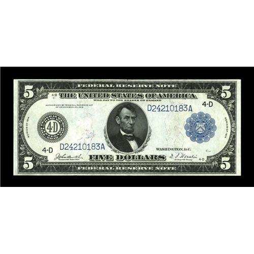 <B>Fr. 858 $5 1914 Federal Reserve Note Extremely Fine.</B></I> This is a bright, colorful representative with crisp surfaces<BR><BR><b>Shipping:</b> Coin/Currency (<a target="_blank" href="http://www.heritageauctions.com/common/shipping.php">view shipping information</a>)