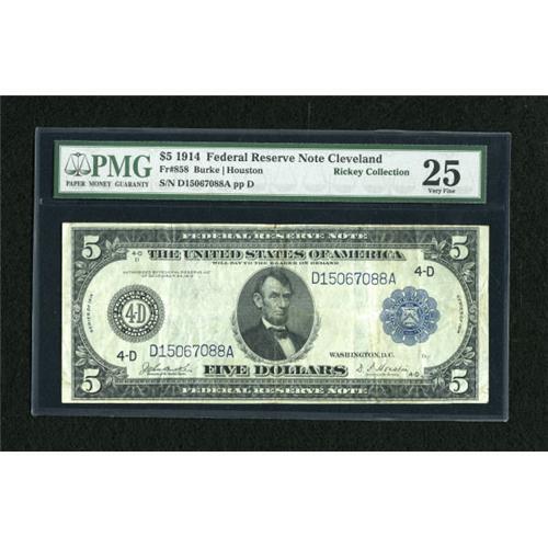 Fr. 858 $5 1914 Federal Reserve Note PMG Very