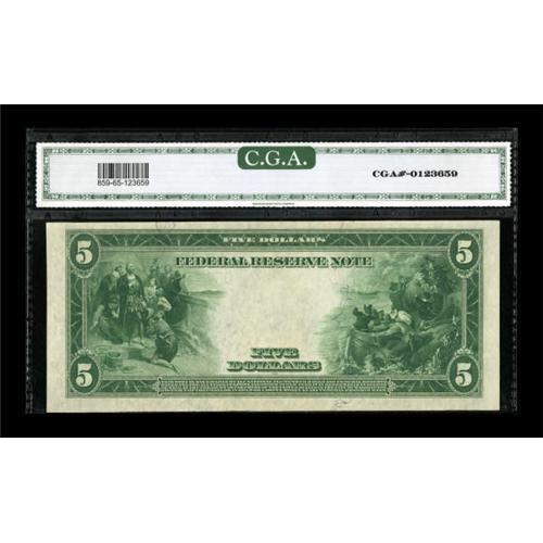<B>Fr. 859a $5 1914 Federal Reserve Note CGA Gem Uncirculated 65.</B></I> Solid margins and good color highlight this $5 FRN.<BR><BR><b>Shipping:</b> Coins & Currency (<a target="_blank" href="http://www.heritageauctions.com/common/shipping.php">view shipping information</a>)