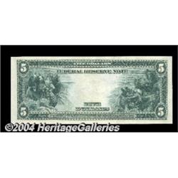 Fr. 859a $5 1914 Federal Reserve Note Choice New. The most common Cleveland District note, but quite a nice one. <BR><BR><B>Important notice:</B> Heritage usually auctions material at the rate of 200-250 lots per hour. On some occasions eBay Live bid software or the Internet may not be able to keep up with the pace of the auction. We recommend placing a realistic absentee bid now as insurance to avoid disappointment. Occasionally the auctioneer may eliminate or reject an eBay Live bid, and the auctioneer may also reopen a lot after the close of the eBay live bidding (usually because we missed an audience bid), and may reject your bid even if it shows you as the winning bidder. By bidding via eBay Live, you agree that Heritage may award the lot to another bidder at its sole discretion under the circumstances described above or any other reasonable circumstances. Since eBay bids are not shown to us until we open the lot on the floor, we treat those bids just like floor bids. In most cases the floor responds before the eBay bid is presented to us, due to Internet lag time, so for consistency we have made it a policy that floor bids are always considered first over tie eBay live bids. Also please note that all Heritage lots purchased through eBay Live carry a 20% Buyer's Premium. Please make sure you read the Terms and Conditions before you bid. <BR><BR><B>IMPORTANT ANNOUNCEMENT ABOUT RESERVES:</B> Heritage now divulges all reserves on its web site 7 days before every auction. If you want to know whether the reserve on this lot has been met, and if not, what the reserve amount is, please visit this lot page on the HeritageCoin.com web site, or email: bid@HeritageGalleries.com