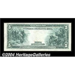 Fr. 859a $5 1914 Federal Reserve Note Gem New. A beautiful Cleveland District note, with good margins, exceptional centering and a very nice overall appearance. <BR><BR><B>Important notice:</B> Heritage usually auctions material at the rate of 200-250 lots per hour. On some occasions eBay Live bid software or the Internet may not be able to keep up with the pace of the auction. We recommend placing a realistic absentee bid now as insurance to avoid disappointment. Occasionally the auctioneer may eliminate or reject an eBay Live bid, and the auctioneer may also reopen a lot after the close of the eBay live bidding (usually because we missed an audience bid), and may reject your bid even if it shows you as the winning bidder. By bidding via eBay Live, you agree that Heritage may award the lot to another bidder at its sole discretion under the circumstances described above or any other reasonable circumstances. Since eBay bids are not shown to us until we open the lot on the floor, we treat those bids just like floor bids. In most cases the floor responds before the eBay bid is presented to us, due to Internet lag time, so for consistency we have made it a policy that floor bids are always considered first over tie eBay live bids. Also please note that all Heritage lots purchased through eBay Live carry a 20% Buyer's Premium. Please make sure you read the Terms and Conditions before you bid. <BR><BR><B>IMPORTANT ANNOUNCEMENT ABOUT RESERVES:</B> Heritage now divulges all reserves on its web site 7 days before every auction. If you want to know whether the reserve on this lot has been met, and if not, what the reserve amount is, please visit this lot page on the HeritageCoin.com web site, or email: bid@HeritageGalleries.com
