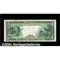 Fr. 859a $5 1914 Federal Reserve Note Very Fine-Extremely Fine. A nice natural problem-free note. <BR><BR><B>Important notice:</B> Heritage usually auctions material at the rate of 200-250 lots per hour. On some occasions eBay Live bid software or the Internet may not be able to keep up with the pace of the auction. We recommend placing a realistic absentee bid now as insurance to avoid disappointment. Occasionally the auctioneer may eliminate or reject an eBay Live bid, and the auctioneer may also reopen a lot after the close of the eBay live bidding (usually because we missed an audience bid), and may reject your bid even if it shows you as the winning bidder. By bidding via eBay Live, you agree that Heritage may award the lot to another bidder at its sole discretion under the circumstances described above or any other reasonable circumstances. Since eBay bids are not shown to us until we open the lot on the floor, we treat those bids just like floor bids. In most cases the floor responds before the eBay bid is presented to us, due to Internet lag time, so for consistency we have made it a policy that floor bids are always considered first over tie eBay live bids. Also please note that all Heritage lots purchased through eBay Live carry a 20% Buyer's Premium. Please make sure you read the Terms and Conditions before you bid. <BR><BR><B>IMPORTANT ANNOUNCEMENT ABOUT RESERVES:</B> Heritage now divulges all reserves on its web site 7 days before every auction. If you want to know whether the reserve on this lot has been met, and if not, what the reserve amount is, please visit this lot page on the HeritageCoin.com web site, or email: bid@HeritageGalleries.com