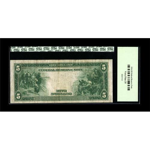 <B>Fr. 859a $5 1914 Federal Reserve Star Note PCGS Very Fine 25.</B></I> There are two dozen stars in the census for this Friedberg number, but only five of the notes grade higher than this example.<BR><BR><b>Shipping:</b> Coins & Currency (<a target="_blank" href="http://www.heritageauctions.com/common/shipping.php">view shipping information</a>)