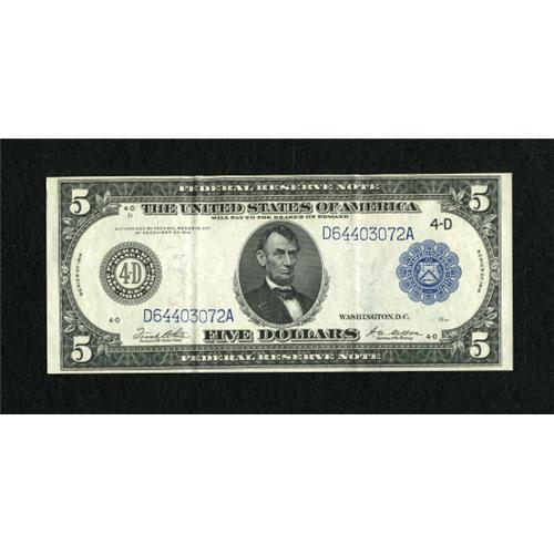 Fr. 859b $5 1914 Federal Reserve Note Extremely