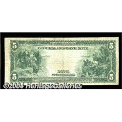 Fr. 859b $5 1914 Federal Reserve Note Very Fine. Around two dozen examples are known of this relatively scarce "b" number. Solid for the grade, with natural surfaces and no problems of any kind. <BR><BR><B>Important notice:</B> Heritage usually auctions material at the rate of 200-250 lots per hour. On some occasions eBay Live bid software or the Internet may not be able to keep up with the pace of the auction. We recommend placing a realistic absentee bid now as insurance to avoid disappointment. Occasionally the auctioneer may eliminate or reject an eBay Live bid, and the auctioneer may also reopen a lot after the close of the eBay live bidding (usually because we missed an audience bid), and may reject your bid even if it shows you as the winning bidder. By bidding via eBay Live, you agree that Heritage may award the lot to another bidder at its sole discretion under the circumstances described above or any other reasonable circumstances. Since eBay bids are not shown to us until we open the lot on the floor, we treat those bids just like floor bids. In most cases the floor responds before the eBay bid is presented to us, due to Internet lag time, so for consistency we have made it a policy that floor bids are always considered first over tie eBay live bids. Also please note that all Heritage lots purchased through eBay Live carry a 20% Buyer's Premium. Please make sure you read the Terms and Conditions before you bid. <BR><BR><B>IMPORTANT ANNOUNCEMENT ABOUT RESERVES:</B> Heritage now divulges all reserves on its web site 7 days before every auction. If you want to know whether the reserve on this lot has been met, and if not, what the reserve amount is, please visit this lot page on the HeritageCoin.com web site, or email: bid@HeritageGalleries.com