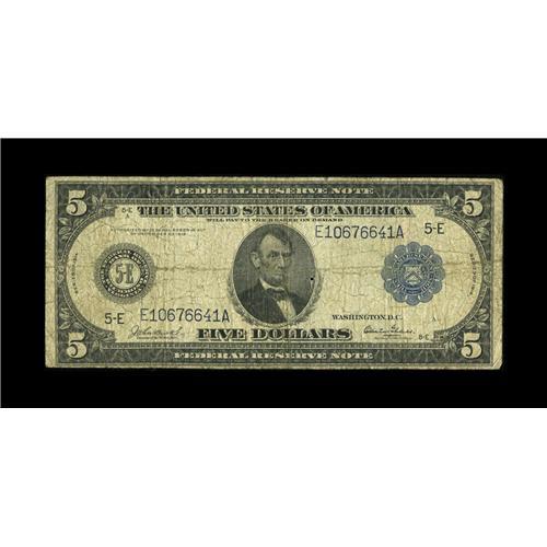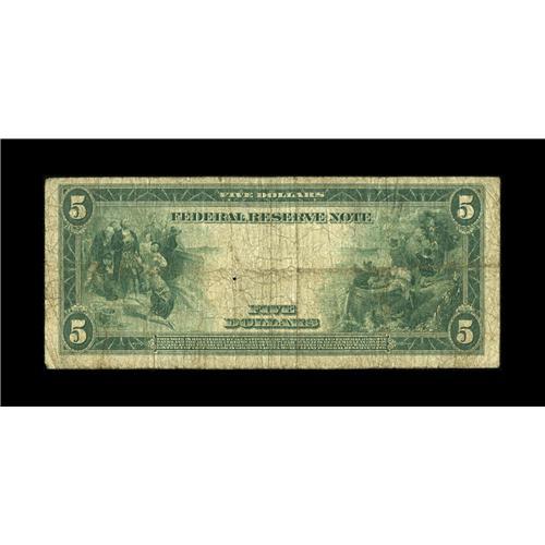 <B>Fr. 861 $5 1914 Federal Reserve Note Very Good.</B></I> This is only the third time an example from this tougher signature combination has appeared in one of our sales. A small wear hole is seen in the portrait area at right.<BR><BR><b>Shipping:</b> Coin/Currency (<a target="_blank" href="http://www.heritageauctions.com/common/shipping.php">view shipping information</a>)