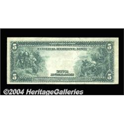 Fr. 862 $5 1914 Federal Reserve Note Extremely Fine. The total number known for this rare Fed is about a dozen and a half. This one has a few very light folds, but it is perfectly clean, bright, fresh and original. <BR><BR><B>Important notice:</B> Heritage usually auctions material at the rate of 200-250 lots per hour. On some occasions eBay Live bid software or the Internet may not be able to keep up with the pace of the auction. We recommend placing a realistic absentee bid now as insurance to avoid disappointment. Occasionally the auctioneer may eliminate or reject an eBay Live bid, and the auctioneer may also reopen a lot after the close of the eBay live bidding (usually because we missed an audience bid), and may reject your bid even if it shows you as the winning bidder. By bidding via eBay Live, you agree that Heritage may award the lot to another bidder at its sole discretion under the circumstances described above or any other reasonable circumstances. Since eBay bids are not shown to us until we open the lot on the floor, we treat those bids just like floor bids. In most cases the floor responds before the eBay bid is presented to us, due to Internet lag time, so for consistency we have made it a policy that floor bids are always considered first over tie eBay live bids. Also please note that all Heritage lots purchased through eBay Live carry a 20% Buyer's Premium. Please make sure you read the Terms and Conditions before you bid. <BR><BR><B>IMPORTANT ANNOUNCEMENT ABOUT RESERVES:</B> Heritage now divulges all reserves on its web site 7 days before every auction. If you want to know whether the reserve on this lot has been met, and if not, what the reserve amount is, please visit this lot page on the HeritageCoin.com web site, or email: bid@HeritageGalleries.com