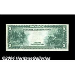 Fr. 862 $5 1914 Federal Reserve Note Gem New. A beautifully fresh, broadly margined Richmond District note, and a rather scarce one at that. Fewer than 20 examples of this number are known to us, and only a handful are high grade. <BR><BR><B>Important notice:</B> Heritage usually auctions material at the rate of 200-250 lots per hour. On some occasions eBay Live bid software or the Internet may not be able to keep up with the pace of the auction. We recommend placing a realistic absentee bid now as insurance to avoid disappointment. Occasionally the auctioneer may eliminate or reject an eBay Live bid, and the auctioneer may also reopen a lot after the close of the eBay live bidding (usually because we missed an audience bid), and may reject your bid even if it shows you as the winning bidder. By bidding via eBay Live, you agree that Heritage may award the lot to another bidder at its sole discretion under the circumstances described above or any other reasonable circumstances. Since eBay bids are not shown to us until we open the lot on the floor, we treat those bids just like floor bids. In most cases the floor responds before the eBay bid is presented to us, due to Internet lag time, so for consistency we have made it a policy that floor bids are always considered first over tie eBay live bids. Also please note that all Heritage lots purchased through eBay Live carry a 20% Buyer's Premium. Please make sure you read the Terms and Conditions before you bid. <BR><BR><B>IMPORTANT ANNOUNCEMENT ABOUT RESERVES:</B> Heritage now divulges all reserves on its web site 7 days before every auction. If you want to know whether the reserve on this lot has been met, and if not, what the reserve amount is, please visit this lot page on the HeritageCoin.com web site, or email: bid@HeritageGalleries.com
