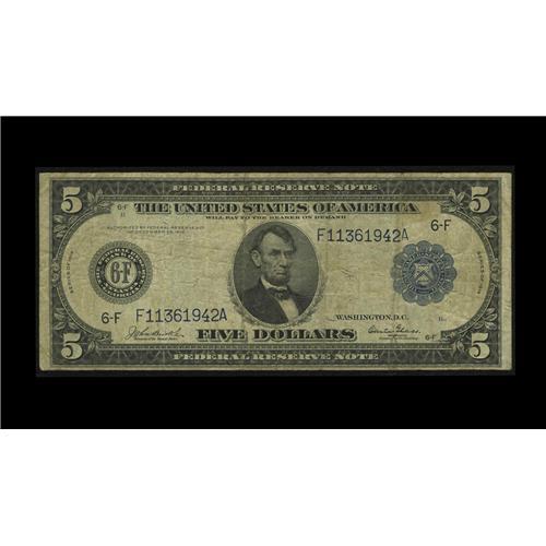 Fr. 865 $5 1914 Federal Reserve Note Fine. A very scarc Fr. 865 $5 1914 Federal Reserve Note Fine.