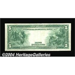 Fr. 865 $5 1914 Federal Reserve Note Very Fine-Extremely Fine. An extremely rare Fed, with only a half-dozen known in all grades combined. CAA has handled all the Friedberg numbers for Five Dollar Federal Reserve Notes. There are only four notes that we have sold only once, and until now, Fr. 865 was among them. The collection that we're presently selling is the finest group of Feds that we know of, and the consignor was never able to improve on this lightly circulated note. <BR><BR><B>Important notice:</B> Heritage usually auctions material at the rate of 200-250 lots per hour. On some occasions eBay Live bid software or the Internet may not be able to keep up with the pace of the auction. We recommend placing a realistic absentee bid now as insurance to avoid disappointment. Occasionally the auctioneer may eliminate or reject an eBay Live bid, and the auctioneer may also reopen a lot after the close of the eBay live bidding (usually because we missed an audience bid), and may reject your bid even if it shows you as the winning bidder. By bidding via eBay Live, you agree that Heritage may award the lot to another bidder at its sole discretion under the circumstances described above or any other reasonable circumstances. Since eBay bids are not shown to us until we open the lot on the floor, we treat those bids just like floor bids. In most cases the floor responds before the eBay bid is presented to us, due to Internet lag time, so for consistency we have made it a policy that floor bids are always considered first over tie eBay live bids. Also please note that all Heritage lots purchased through eBay Live carry a 20% Buyer's Premium. Please make sure you read the Terms and Conditions before you bid. <BR><BR><B>IMPORTANT ANNOUNCEMENT ABOUT RESERVES:</B> Heritage now divulges all reserves on its web site 7 days before every auction. If you want to know whether the reserve on this lot has been met, and if not, what the reserve amount is, please visit this lot page on the HeritageCoin.com web site, or email: bid@HeritageGalleries.com