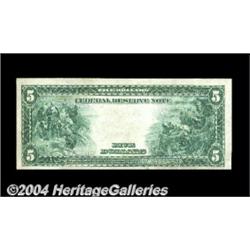 Fr. 869 $5 1914 Federal Reserve Note Choice New. One of the more available Burke-Glass notes, with about two dozen examples known. Few could be better than this deeply embossed, original note that approaches the Gem grade. <BR><BR><B>Important notice:</B> Heritage usually auctions material at the rate of 200-250 lots per hour. On some occasions eBay Live bid software or the Internet may not be able to keep up with the pace of the auction. We recommend placing a realistic absentee bid now as insurance to avoid disappointment. Occasionally the auctioneer may eliminate or reject an eBay Live bid, and the auctioneer may also reopen a lot after the close of the eBay live bidding (usually because we missed an audience bid), and may reject your bid even if it shows you as the winning bidder. By bidding via eBay Live, you agree that Heritage may award the lot to another bidder at its sole discretion under the circumstances described above or any other reasonable circumstances. Since eBay bids are not shown to us until we open the lot on the floor, we treat those bids just like floor bids. In most cases the floor responds before the eBay bid is presented to us, due to Internet lag time, so for consistency we have made it a policy that floor bids are always considered first over tie eBay live bids. Also please note that all Heritage lots purchased through eBay Live carry a 20% Buyer's Premium. Please make sure you read the Terms and Conditions before you bid. <BR><BR><B>IMPORTANT ANNOUNCEMENT ABOUT RESERVES:</B> Heritage now divulges all reserves on its web site 7 days before every auction. If you want to know whether the reserve on this lot has been met, and if not, what the reserve amount is, please visit this lot page on the HeritageCoin.com web site, or email: bid@HeritageGalleries.com