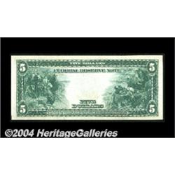 Fr. 869 $5 1914 Federal Reserve Note Gem New. One of the more common districts for Burke-Glass notes, but a real beauty. Deep embossing, bright colors, pristine surfaces and broad margins. <BR><BR><B>Important notice:</B> Heritage usually auctions material at the rate of 200-250 lots per hour. On some occasions eBay Live bid software or the Internet may not be able to keep up with the pace of the auction. We recommend placing a realistic absentee bid now as insurance to avoid disappointment. Occasionally the auctioneer may eliminate or reject an eBay Live bid, and the auctioneer may also reopen a lot after the close of the eBay live bidding (usually because we missed an audience bid), and may reject your bid even if it shows you as the winning bidder. By bidding via eBay Live, you agree that Heritage may award the lot to another bidder at its sole discretion under the circumstances described above or any other reasonable circumstances. Since eBay bids are not shown to us until we open the lot on the floor, we treat those bids just like floor bids. In most cases the floor responds before the eBay bid is presented to us, due to Internet lag time, so for consistency we have made it a policy that floor bids are always considered first over tie eBay live bids. Also please note that all Heritage lots purchased through eBay Live carry a 20% Buyer's Premium. Please make sure you read the Terms and Conditions before you bid. <BR><BR><B>IMPORTANT ANNOUNCEMENT ABOUT RESERVES:</B> Heritage now divulges all reserves on its web site 7 days before every auction. If you want to know whether the reserve on this lot has been met, and if not, what the reserve amount is, please visit this lot page on the HeritageCoin.com web site, or email: bid@HeritageGalleries.com