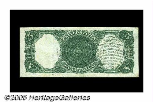 <B>Fr. 87 $5 1907 Legal Tender Extremely Fine.</B></I> Terrific margins and perfect originality highlight this Pioneer Family Five. Even this common type is difficult to locate when looking for really nice, lightly circulated examples.