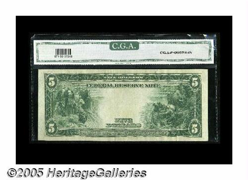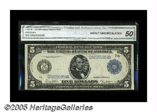 <B>Fr. 871b $5 1914 Federal Reserve Note CGA About Uncirculated 50.</B></I> A nice original example of this somewhat scarcer "b" type.
