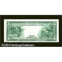 Fr. 871b $5 1914 Federal Reserve Note Gem New. A lovely <B>Fr. 871b $5 1914 Federal Reserve Note Gem New.</B></I> A lovely note with excellent paper originality, broad, even margins, and bright, fresh colors. <BR><BR><B>Important notice:</B> Heritage usually auctions material at the rate of 200-250 lots per hour. On some occasions eBay Live bid software or the Internet may not be able to keep up with the pace of the auction. We recommend placing a realistic absentee bid now as insurance to avoid disappointment. Occasionally the auctioneer may eliminate or reject an eBay Live bid, and the auctioneer may also reopen a lot after the close of the eBay live bidding (usually because we missed an audience bid), and may reject your bid even if it shows you as the winning bidder. By bidding via eBay Live, you agree that Heritage may award the lot to another bidder at its sole discretion under the circumstances described above or any other reasonable circumstances. Since eBay bids are not shown to us until we open the lot on the floor, we treat those bids just like floor bids. In most cases the floor responds before the eBay bid is presented to us, due to Internet lag time, so for consistency we have made it a policy that floor bids are always considered first over tie eBay live bids. Also please note that all Heritage lots purchased through eBay Live carry a 20% Buyer's Premium. Please make sure you read the Terms and Conditions before you bid. This lot is being auctioned in conjunction with a live floor auction by Heritage Galleries & Auctioneers. All final auction and invoice information will be supplied by Heritage Galleries & Auctioneers, and all other information should be considered preliminary. Lot:17694