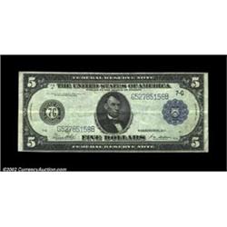 Fr. 871b $5 1914 Federal Reserve Note Very Fine. A natural, problem-free example of this scarcer "b"-type. Important notice: We expect to be auctioning lots at the rate of 200-250 per hour. Sometimes eBay Premier live bid software cannot keep up with that pace, so we strongly recommend that you place a realistic proxy bid now as insurance to avoid disappointment. Also please note that all Heritage/CAA lots purchased through eBay Premier carry a 20% Buyer's Premium. Please make sure you read the Terms and Conditions.