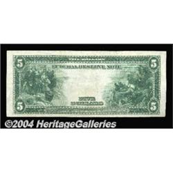 Fr. 871b $5 1914 Federal Reserve Note Extremely Fine. One of the more common "b"-type examples. <BR><BR><B>Important notice:</B> Heritage usually auctions material at the rate of 200-250 lots per hour. On some occasions eBay Live bid software or the Internet may not be able to keep up with the pace of the auction. We recommend placing a realistic absentee bid now as insurance to avoid disappointment. Occasionally the auctioneer may eliminate or reject an eBay Live bid, and the auctioneer may also reopen a lot after the close of the eBay live bidding (usually because we missed an audience bid), and may reject your bid even if it shows you as the winning bidder. By bidding via eBay Live, you agree that Heritage may award the lot to another bidder at its sole discretion under the circumstances described above or any other reasonable circumstances. Since eBay bids are not shown to us until we open the lot on the floor, we treat those bids just like floor bids. In most cases the floor responds before the eBay bid is presented to us, due to Internet lag time, so for consistency we have made it a policy that floor bids are always considered first over tie eBay live bids. Also please note that all Heritage lots purchased through eBay Live carry a 20% Buyer's Premium. Please make sure you read the Terms and Conditions before you bid. <BR><BR><B>IMPORTANT ANNOUNCEMENT ABOUT RESERVES:</B> Heritage now divulges all reserves on its web site 7 days before every auction. If you want to know whether the reserve on this lot has been met, and if not, what the reserve amount is, please visit this lot page on the HeritageCoin.com web site, or email: bid@HeritageGalleries.com