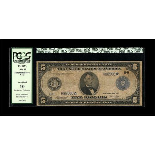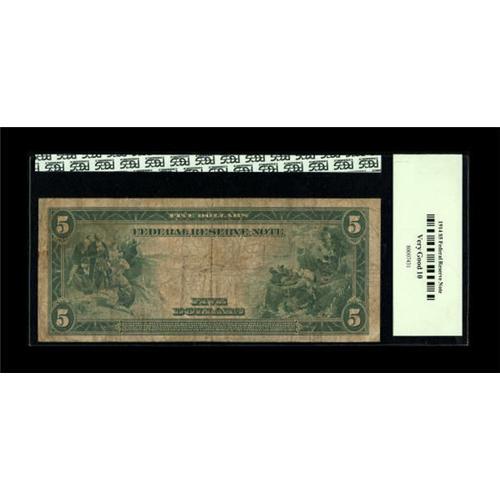 <B>Fr. 873 $5 1914 Federal Reserve Star Note PCGS Very Good 10.</B></I> This is one of fewer than ten star notes known for this St. Louis district number. It's a decent piece which shows plenty of circulation but has no serious defects.<BR><BR><b>Shipping:</b> Coins & Currency (<a target="_blank" href="http://www.heritageauctions.com/common/shipping.php">view shipping information</a>)