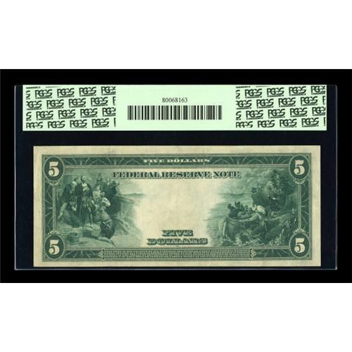 <B>Fr. 873 $5 1914 Federal Reserve Star Note PCGS Very Fine 35.</B></I> A second outstanding St. Louis district $5 star from the O'Neal holdings. It is, for reasons best known only to the catalogue compilers, listed in the star census as CU, having been reported in that grade as far back as October, 1977. While quite nice, it is definitely not uncirculated. Of the nine pieces making up the census for this number, however, it is easily the second finest, and, with only one other star of this number offered since 2000, a very challenging number to acquire in any grade. <BR><I>From The Lawrence O'Neal Collection</B></I><BR><BR><b>Shipping:</b> Coins & Currency (<a target="_blank" href="http://www.heritageauctions.com/common/shipping.php">view shipping information</a>)