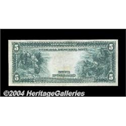 Fr. 874 $5 1914 Federal Reserve Note About New. Lightly center folded and with a bit of handling. <BR><BR><B>Important notice:</B> Heritage usually auctions material at the rate of 200-250 lots per hour. On some occasions eBay Live bid software or the Internet may not be able to keep up with the pace of the auction. We recommend placing a realistic absentee bid now as insurance to avoid disappointment. Occasionally the auctioneer may eliminate or reject an eBay Live bid, and the auctioneer may also reopen a lot after the close of the eBay live bidding (usually because we missed an audience bid), and may reject your bid even if it shows you as the winning bidder. By bidding via eBay Live, you agree that Heritage may award the lot to another bidder at its sole discretion under the circumstances described above or any other reasonable circumstances. Since eBay bids are not shown to us until we open the lot on the floor, we treat those bids just like floor bids. In most cases the floor responds before the eBay bid is presented to us, due to Internet lag time, so for consistency we have made it a policy that floor bids are always considered first over tie eBay live bids. Also please note that all Heritage lots purchased through eBay Live carry a 20% Buyer's Premium. Please make sure you read the Terms and Conditions before you bid. <BR><BR><B>IMPORTANT ANNOUNCEMENT ABOUT RESERVES:</B> Heritage now divulges all reserves on its web site 7 days before every auction. If you want to know whether the reserve on this lot has been met, and if not, what the reserve amount is, please visit this lot page on the HeritageCoin.com web site, or email: bid@HeritageGalleries.com