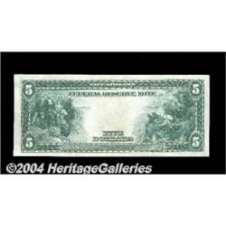 Fr. 874 $5 1914 Federal Reserve Note Very Choice New. This is a particularly nice example of a relatively available Fed, with a census approaching 40, but with good embossing and a pleasing appearance. <BR><BR><B>Important notice:</B> Heritage usually auctions material at the rate of 200-250 lots per hour. On some occasions eBay Live bid software or the Internet may not be able to keep up with the pace of the auction. We recommend placing a realistic absentee bid now as insurance to avoid disappointment. Occasionally the auctioneer may eliminate or reject an eBay Live bid, and the auctioneer may also reopen a lot after the close of the eBay live bidding (usually because we missed an audience bid), and may reject your bid even if it shows you as the winning bidder. By bidding via eBay Live, you agree that Heritage may award the lot to another bidder at its sole discretion under the circumstances described above or any other reasonable circumstances. Since eBay bids are not shown to us until we open the lot on the floor, we treat those bids just like floor bids. In most cases the floor responds before the eBay bid is presented to us, due to Internet lag time, so for consistency we have made it a policy that floor bids are always considered first over tie eBay live bids. Also please note that all Heritage lots purchased through eBay Live carry a 20% Buyer's Premium. Please make sure you read the Terms and Conditions before you bid. <BR><BR><B>IMPORTANT ANNOUNCEMENT ABOUT RESERVES:</B> Heritage now divulges all reserves on its web site 7 days before every auction. If you want to know whether the reserve on this lot has been met, and if not, what the reserve amount is, please visit this lot page on the HeritageCoin.com web site, or email: bid@HeritageGalleries.com