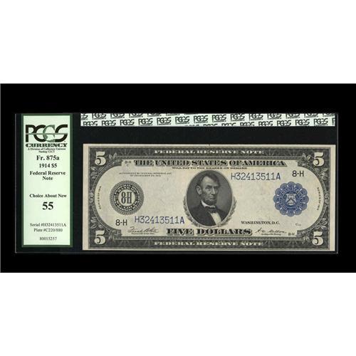 Fr. 875a $5 1914 Federal Reserve Note PCGS Choice About Fr. 875a $5 1914 Federal Reserve Note PCGS C