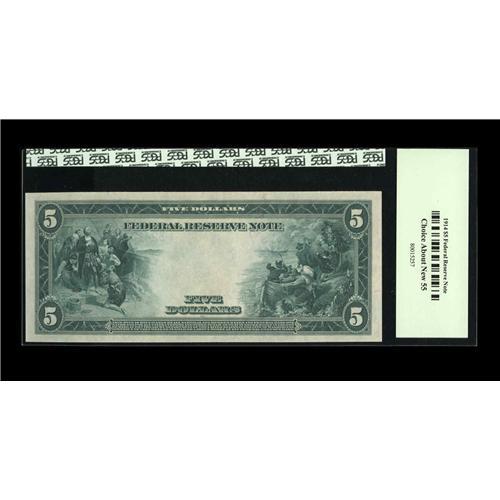 <B>Fr. 875a $5 1914 Federal Reserve Note PCGS Choice About New 55.</B></I> A good-looking Fed Five.