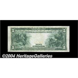 Fr. 875a $5 1914 Federal Reserve Note Extremely Fine. About 25 examples are known for this St. Louis "a" type. <BR><BR><B>Important notice:</B> Heritage usually auctions material at the rate of 200-250 lots per hour. On some occasions eBay Live bid software or the Internet may not be able to keep up with the pace of the auction. We recommend placing a realistic absentee bid now as insurance to avoid disappointment. Occasionally the auctioneer may eliminate or reject an eBay Live bid, and the auctioneer may also reopen a lot after the close of the eBay live bidding (usually because we missed an audience bid), and may reject your bid even if it shows you as the winning bidder. By bidding via eBay Live, you agree that Heritage may award the lot to another bidder at its sole discretion under the circumstances described above or any other reasonable circumstances. Since eBay bids are not shown to us until we open the lot on the floor, we treat those bids just like floor bids. In most cases the floor responds before the eBay bid is presented to us, due to Internet lag time, so for consistency we have made it a policy that floor bids are always considered first over tie eBay live bids. Also please note that all Heritage lots purchased through eBay Live carry a 20% Buyer's Premium. Please make sure you read the Terms and Conditions before you bid. <BR><BR><B>IMPORTANT ANNOUNCEMENT ABOUT RESERVES:</B> Heritage now divulges all reserves on its web site 7 days before every auction. If you want to know whether the reserve on this lot has been met, and if not, what the reserve amount is, please visit this lot page on the HeritageCoin.com web site, or email: bid@HeritageGalleries.com