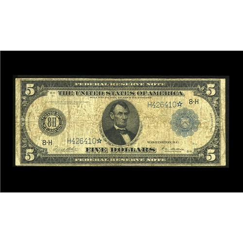 Fr. 875a $5 1914 Federal Reserve Star Note Very Good. F Fr. 875a $5 1914 Federal Reserve Star Note V