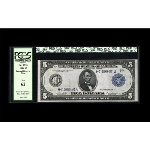 Fr. 875b $5 1914 Federal Reserve Note PCGS New 62. A de Fr. 875b $5 1914 Federal Reserve Note PCGS N