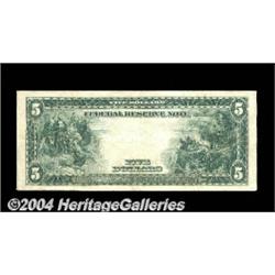 Fr. 876 $5 1914 Federal Reserve Note Very Fine. The ninth example of this number that CAA has sold out of a population of just fewer than 30. It's enhanced by the neat serial number I3000001A. <BR><BR><B>Important notice:</B> Heritage usually auctions material at the rate of 200-250 lots per hour. On some occasions eBay Live bid software or the Internet may not be able to keep up with the pace of the auction. We recommend placing a realistic absentee bid now as insurance to avoid disappointment. Occasionally the auctioneer may eliminate or reject an eBay Live bid, and the auctioneer may also reopen a lot after the close of the eBay live bidding (usually because we missed an audience bid), and may reject your bid even if it shows you as the winning bidder. By bidding via eBay Live, you agree that Heritage may award the lot to another bidder at its sole discretion under the circumstances described above or any other reasonable circumstances. Since eBay bids are not shown to us until we open the lot on the floor, we treat those bids just like floor bids. In most cases the floor responds before the eBay bid is presented to us, due to Internet lag time, so for consistency we have made it a policy that floor bids are always considered first over tie eBay live bids. Also please note that all Heritage lots purchased through eBay Live carry a 20% Buyer's Premium. Please make sure you read the Terms and Conditions before you bid. <BR><BR><B>IMPORTANT ANNOUNCEMENT ABOUT RESERVES:</B> Heritage now divulges all reserves on its web site 7 days before every auction. If you want to know whether the reserve on this lot has been met, and if not, what the reserve amount is, please visit this lot page on the HeritageCoin.com web site, or email: bid@HeritageGalleries.com
