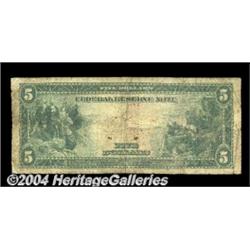 Fr. 876 $5 1914 Federal Reserve Note Very Good. This is the tenth example that CAA has sold out of a population of approximately 20 pieces. It's well worn and a bit soiled, but it is free of holes, tears and edge problems. <BR><BR><B>Important notice:</B> Heritage usually auctions material at the rate of 200-250 lots per hour. On some occasions eBay Live bid software or the Internet may not be able to keep up with the pace of the auction. We recommend placing a realistic absentee bid now as insurance to avoid disappointment. Occasionally the auctioneer may eliminate or reject an eBay Live bid, and the auctioneer may also reopen a lot after the close of the eBay live bidding (usually because we missed an audience bid), and may reject your bid even if it shows you as the winning bidder. By bidding via eBay Live, you agree that Heritage may award the lot to another bidder at its sole discretion under the circumstances described above or any other reasonable circumstances. Since eBay bids are not shown to us until we open the lot on the floor, we treat those bids just like floor bids. In most cases the floor responds before the eBay bid is presented to us, due to Internet lag time, so for consistency we have made it a policy that floor bids are always considered first over tie eBay live bids. Also please note that all Heritage lots purchased through eBay Live carry a 20% Buyer's Premium. Please make sure you read the Terms and Conditions before you bid. <BR><BR><B>IMPORTANT ANNOUNCEMENT ABOUT RESERVES:</B> Heritage now divulges all reserves on its web site 7 days before every auction. If you want to know whether the reserve on this lot has been met, and if not, what the reserve amount is, please visit this lot page on the HeritageCoin.com web site, or email: bid@HeritageGalleries.com