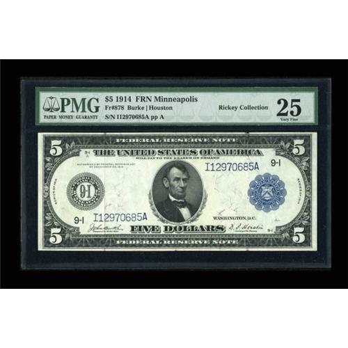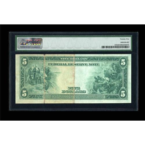 <B>Fr. 878 $5 1914 Federal Reserve Note PMG Very Fine 25.</B></I> The folds are a touch heavy on this otherwise lightly circulated piece.<BR><BR><b>Shipping:</b> Coins & Currency (<a target="_blank" href="http://www.heritageauctions.com/common/shipping.php">view shipping information</a>)