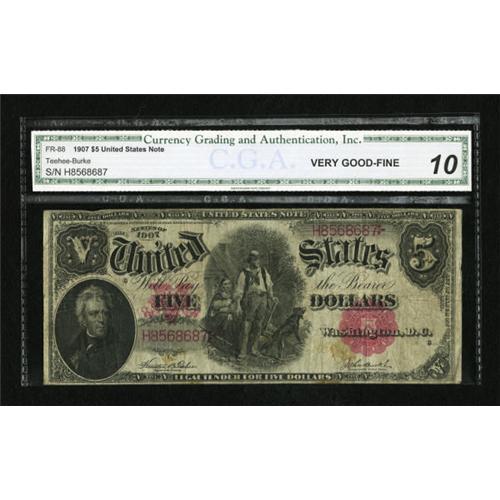 Fr. 88 $5 1907 Legal Tender CGA Very Good-Fine