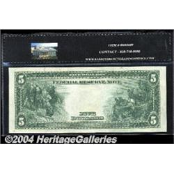 Fr. 880 $5 1914 Federal Reserve Note RCGS Superb Gem New 67. Only about 20 examples are known in all grades combined, including a short run of Unc's. This note, which we handled once before, prior to its being encapsulated, is as nice as any we've seen for this rare number. The paper originality is apparent right through the holder, and the note is hugely margined. A terrific combination of grade and rarity. <BR><BR><B>Important notice:</B> Heritage usually auctions material at the rate of 200-250 lots per hour. On some occasions eBay Live bid software or the Internet may not be able to keep up with the pace of the auction. We recommend placing a realistic absentee bid now as insurance to avoid disappointment. Occasionally the auctioneer may eliminate or reject an eBay Live bid, and the auctioneer may also reopen a lot after the close of the eBay live bidding (usually because we missed an audience bid), and may reject your bid even if it shows you as the winning bidder. By bidding via eBay Live, you agree that Heritage may award the lot to another bidder at its sole discretion under the circumstances described above or any other reasonable circumstances. Since eBay bids are not shown to us until we open the lot on the floor, we treat those bids just like floor bids. In most cases the floor responds before the eBay bid is presented to us, due to Internet lag time, so for consistency we have made it a policy that floor bids are always considered first over tie eBay live bids. Also please note that all Heritage lots purchased through eBay Live carry a 20% Buyer's Premium. Please make sure you read the Terms and Conditions before you bid. <BR><BR><B>IMPORTANT ANNOUNCEMENT ABOUT RESERVES:</B> Heritage now divulges all reserves on its web site 7 days before every auction. If you want to know whether the reserve on this lot has been met, and if not, what the reserve amount is, please visit this lot page on the HeritageCoin.com web site, or email: bid@HeritageGalleries.com