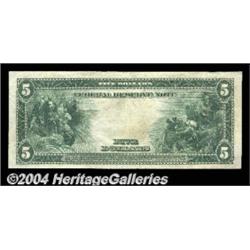 Fr. 880 $5 1914 Federal Reserve Note Very Fine-Extremely Fine. With a census in the mid-twenties, this Kansas City Burke-McAdoo note is not easy to find. It's a perfectly natural piece, flawless save for a few areas of minor age spots. <BR><BR><B>Important notice:</B> Heritage usually auctions material at the rate of 200-250 lots per hour. On some occasions eBay Live bid software or the Internet may not be able to keep up with the pace of the auction. We recommend placing a realistic absentee bid now as insurance to avoid disappointment. Occasionally the auctioneer may eliminate or reject an eBay Live bid, and the auctioneer may also reopen a lot after the close of the eBay live bidding (usually because we missed an audience bid), and may reject your bid even if it shows you as the winning bidder. By bidding via eBay Live, you agree that Heritage may award the lot to another bidder at its sole discretion under the circumstances described above or any other reasonable circumstances. Since eBay bids are not shown to us until we open the lot on the floor, we treat those bids just like floor bids. In most cases the floor responds before the eBay bid is presented to us, due to Internet lag time, so for consistency we have made it a policy that floor bids are always considered first over tie eBay live bids. Also please note that all Heritage lots purchased through eBay Live carry a 20% Buyer's Premium. Please make sure you read the Terms and Conditions before you bid. <BR><BR><B>IMPORTANT ANNOUNCEMENT ABOUT RESERVES:</B> Heritage now divulges all reserves on its web site 7 days before every auction. If you want to know whether the reserve on this lot has been met, and if not, what the reserve amount is, please visit this lot page on the HeritageCoin.com web site, or email: bid@HeritageGalleries.com