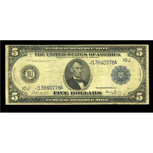 Fr. 881 $5 1914 Federal Reserve Note Fine-Very Fine. De Fr. 881 $5 1914 Federal Reserve Note Fine-Ve