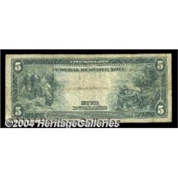 Fr. 882 $5 1914 Federal Reserve Note Fine. Solid for the grade. <BR><BR><B>Important notice:</B> Heritage usually auctions material at the rate of 200-250 lots per hour. On some occasions eBay Live bid software or the Internet may not be able to keep up with the pace of the auction. We recommend placing a realistic absentee bid now as insurance to avoid disappointment. Occasionally the auctioneer may eliminate or reject an eBay Live bid, and the auctioneer may also reopen a lot after the close of the eBay live bidding (usually because we missed an audience bid), and may reject your bid even if it shows you as the winning bidder. By bidding via eBay Live, you agree that Heritage may award the lot to another bidder at its sole discretion under the circumstances described above or any other reasonable circumstances. Since eBay bids are not shown to us until we open the lot on the floor, we treat those bids just like floor bids. In most cases the floor responds before the eBay bid is presented to us, due to Internet lag time, so for consistency we have made it a policy that floor bids are always considered first over tie eBay live bids. Also please note that all Heritage lots purchased through eBay Live carry a 20% Buyer's Premium. Please make sure you read the Terms and Conditions before you bid. <BR><BR><B>IMPORTANT ANNOUNCEMENT ABOUT RESERVES:</B> Heritage now divulges all reserves on its web site 7 days before every auction. If you want to know whether the reserve on this lot has been met, and if not, what the reserve amount is, please visit this lot page on the HeritageCoin.com web site, or email: bid@HeritageGalleries.com