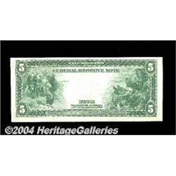 Fr. 883a $5 1914 Federal Reserve Note Choice New. Crackling fresh, but tight along the bottom. <BR><BR><B>Important notice:</B> Heritage usually auctions material at the rate of 200-250 lots per hour. On some occasions eBay Live bid software or the Internet may not be able to keep up with the pace of the auction. We recommend placing a realistic absentee bid now as insurance to avoid disappointment. Occasionally the auctioneer may eliminate or reject an eBay Live bid, and the auctioneer may also reopen a lot after the close of the eBay live bidding (usually because we missed an audience bid), and may reject your bid even if it shows you as the winning bidder. By bidding via eBay Live, you agree that Heritage may award the lot to another bidder at its sole discretion under the circumstances described above or any other reasonable circumstances. Since eBay bids are not shown to us until we open the lot on the floor, we treat those bids just like floor bids. In most cases the floor responds before the eBay bid is presented to us, due to Internet lag time, so for consistency we have made it a policy that floor bids are always considered first over tie eBay live bids. Also please note that all Heritage lots purchased through eBay Live carry a 20% Buyer's Premium. Please make sure you read the Terms and Conditions before you bid. <BR><BR><B>IMPORTANT ANNOUNCEMENT ABOUT RESERVES:</B> Heritage now divulges all reserves on its web site 7 days before every auction. If you want to know whether the reserve on this lot has been met, and if not, what the reserve amount is, please visit this lot page on the HeritageCoin.com web site, or email: bid@HeritageGalleries.com