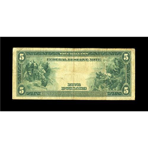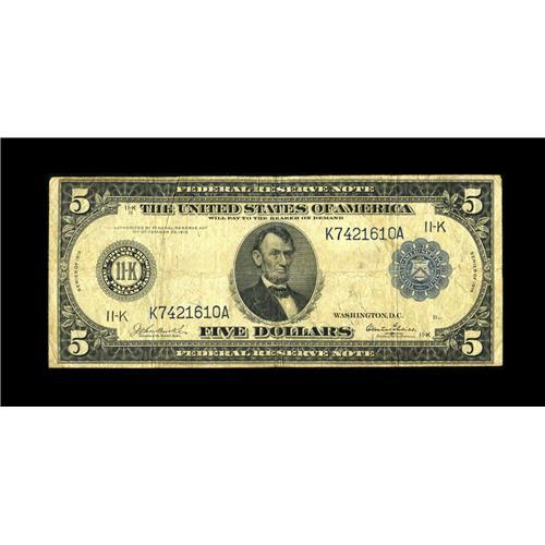 <B>Fr. 885 $5 1914 Federal Reserve Note Very Good.</B></I> Less than 20 examples are known on this tougher signature combination issue off the Dallas district.