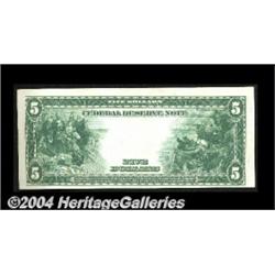 Fr. 887a $5 1914 Federal Reserve Note Very Choice New. About three dozen examples are known of this "a" type Dallas Five Fed. Beautifully bright and quite close to the Gem grade. <BR><BR><B>Important notice:</B> Heritage usually auctions material at the rate of 200-250 lots per hour. On some occasions eBay Live bid software or the Internet may not be able to keep up with the pace of the auction. We recommend placing a realistic absentee bid now as insurance to avoid disappointment. Occasionally the auctioneer may eliminate or reject an eBay Live bid, and the auctioneer may also reopen a lot after the close of the eBay live bidding (usually because we missed an audience bid), and may reject your bid even if it shows you as the winning bidder. By bidding via eBay Live, you agree that Heritage may award the lot to another bidder at its sole discretion under the circumstances described above or any other reasonable circumstances. Since eBay bids are not shown to us until we open the lot on the floor, we treat those bids just like floor bids. In most cases the floor responds before the eBay bid is presented to us, due to Internet lag time, so for consistency we have made it a policy that floor bids are always considered first over tie eBay live bids. Also please note that all Heritage lots purchased through eBay Live carry a 20% Buyer's Premium. Please make sure you read the Terms and Conditions before you bid. <BR><BR><B>IMPORTANT ANNOUNCEMENT ABOUT RESERVES:</B> Heritage now divulges all reserves on its web site 7 days before every auction. If you want to know whether the reserve on this lot has been met, and if not, what the reserve amount is, please visit this lot page on the HeritageCoin.com web site, or email: bid@HeritageGalleries.com