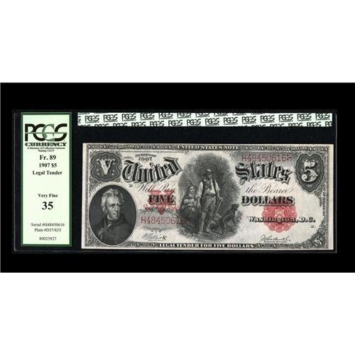 Fr. 89 $5 1907 Legal Tender PCGS Very Fine 35. This col Fr. 89 $5 1907 Legal Tender PCGS Very Fine 3