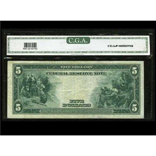 Fr. 890 $5 1914 Federal Reserve Note CGA Very Fine 35. Fr. 890 $5 1914 Federal Reserve Note CGA Very