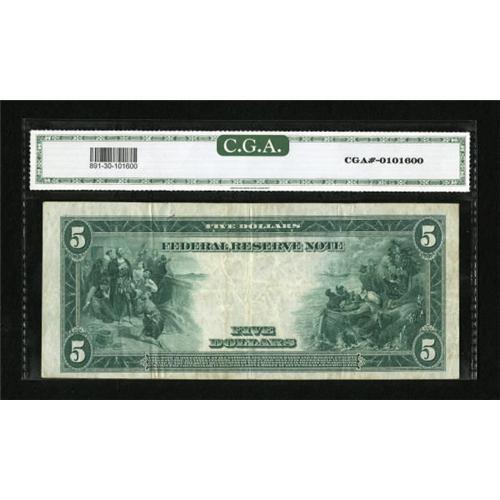 <B>Fr. 891a $5 1914 Federal Reserve Note CGA Very Fine 30.</B></I> The paper is solid for the grade. Some soiling is noted on the folds.<BR><BR><b>Shipping:</b> Coins & Currency (<a target="_blank" href="http://www.heritageauctions.com/common/shipping.php">view shipping information</a>)