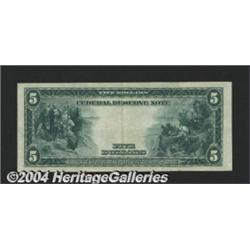 Fr. 891a $5 1914 Federal Reserve Note Extremely Fine. A nice natural example of the most common San Francisco Fed. <BR><BR><B>Important notice:</B> Heritage usually auctions material at the rate of 200-250 lots per hour. On some occasions eBay Live bid software or the Internet may not be able to keep up with the pace of the auction. We recommend placing a realistic absentee bid now as insurance to avoid disappointment. Occasionally the auctioneer may eliminate or reject an eBay Live bid, and the auctioneer may also reopen a lot after the close of the eBay live bidding (usually because we missed an audience bid), and may reject your bid even if it shows you as the winning bidder. By bidding via eBay Live, you agree that Heritage may award the lot to another bidder at its sole discretion under the circumstances described above or any other reasonable circumstances. Since eBay bids are not shown to us until we open the lot on the floor, we treat those bids just like floor bids. In most cases the floor responds before the eBay bid is presented to us, due to Internet lag time, so for consistency we have made it a policy that floor bids are always considered first over tie eBay live bids. Also please note that all Heritage lots purchased through eBay Live carry a 20% Buyer's Premium. Please make sure you read the Terms and Conditions before you bid. <BR><BR><B>IMPORTANT ANNOUNCEMENT ABOUT RESERVES:</B> Heritage now divulges all reserves on its web site 7 days before every auction. If you want to know whether the reserve on this lot has been met, and if not, what the reserve amount is, please visit this lot page on the HeritageCoin.com web site, or email: bid@HeritageGalleries.com