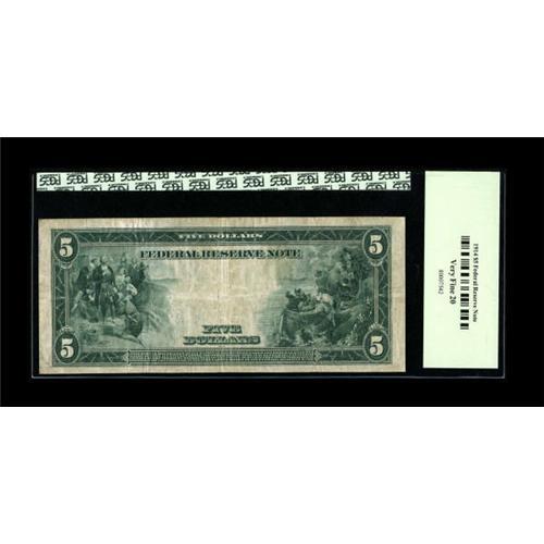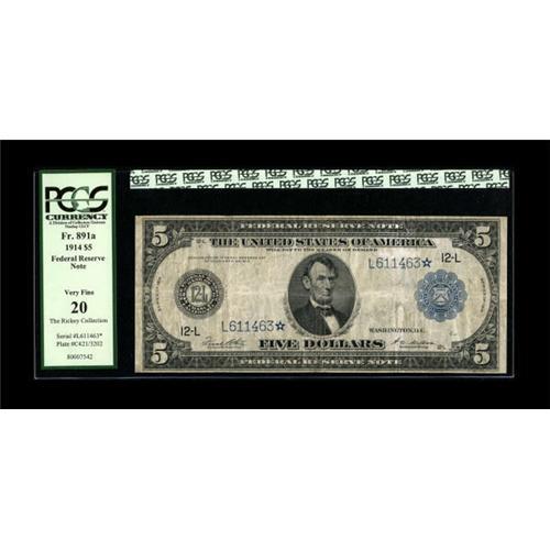 <B>Fr. 891a $5 1914 Federal Reserve Star Note PCGS Very Fine 20.</B></I> This star still possesses original paper surfaces and it is one of only 19 in the census for this Friedberg number.<BR><BR><b>Shipping:</b> Coins & Currency (<a target="_blank" href="http://www.heritageauctions.com/common/shipping.php">view shipping information</a>)