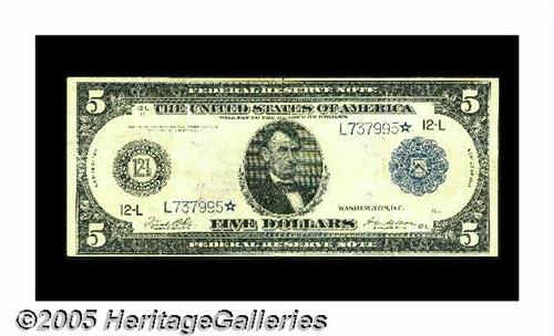 <B>Fr. 891a $5 1914 Federal Reserve Star Note Very Fine.</B></I> One of the higher grade examples of this tough star listed in the Gengerke census. <I>From the collection of Richard Merlau.</B></I>