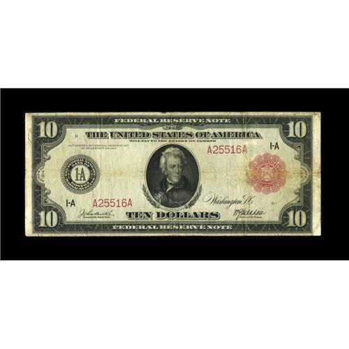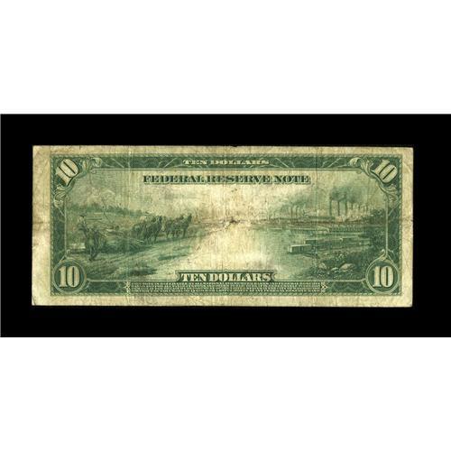 <B>Fr. 892a $10 1914 Red Seal Federal Reserve Note Very Good.</B></I> This example from a tougher issue exhibits light soiling on the back.<BR><BR><b>Shipping:</b> Coin/Currency (<a target="_blank" href="http://www.heritageauctions.com/common/shipping.php">view shipping information</a>)