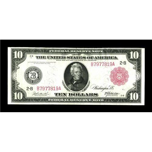 <B>Fr. 893b $10 1914 Red Seal Federal Reserve Note Extremely Fine.</B></I> This is a handsome $10 with traces of serial number embossing and a little bit of natural paper ripple remaining.<BR><I>From The Bill and Kathy Stella Currency Collection</B></I><BR><BR><b>Shipping:</b> Coin/Currency (<a target="_blank" href="http://www.heritageauctions.com/common/shipping.php">view shipping information</a>)